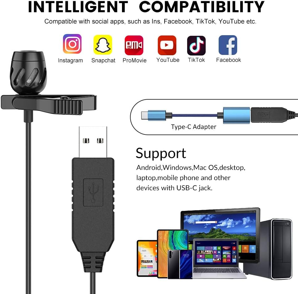 KMAG USB Lavalier Microphone, Lapel Microphone for Computer, USB-C Clip On Mic for YouTube, Recording, Podcasting, Gaming, Interview Omnidirectional Condenser Mic for PC, Laptop, Mac, Smartphone